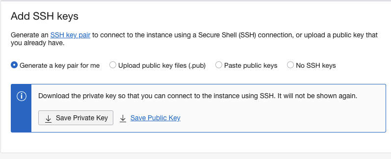 아래로 스크롤 하면 SSH 접속을 할 수 있는 SSH Key를 받을 수 있다.
